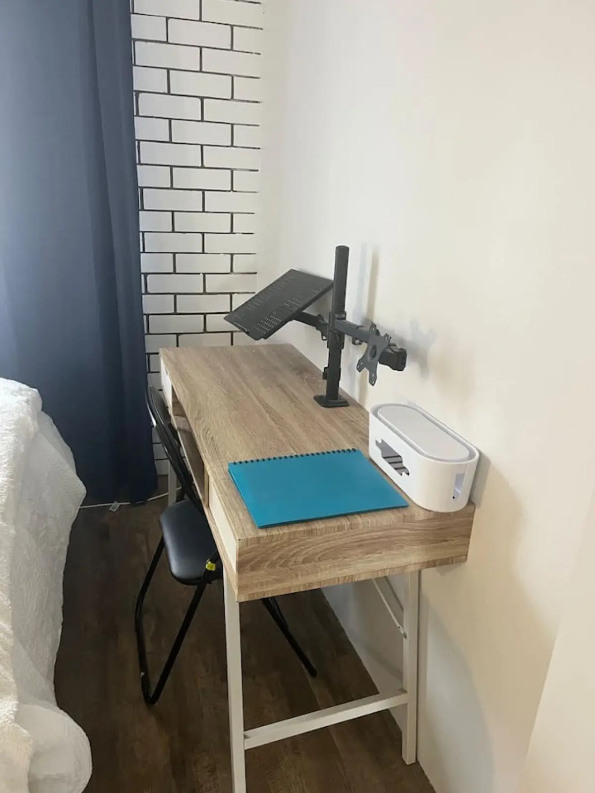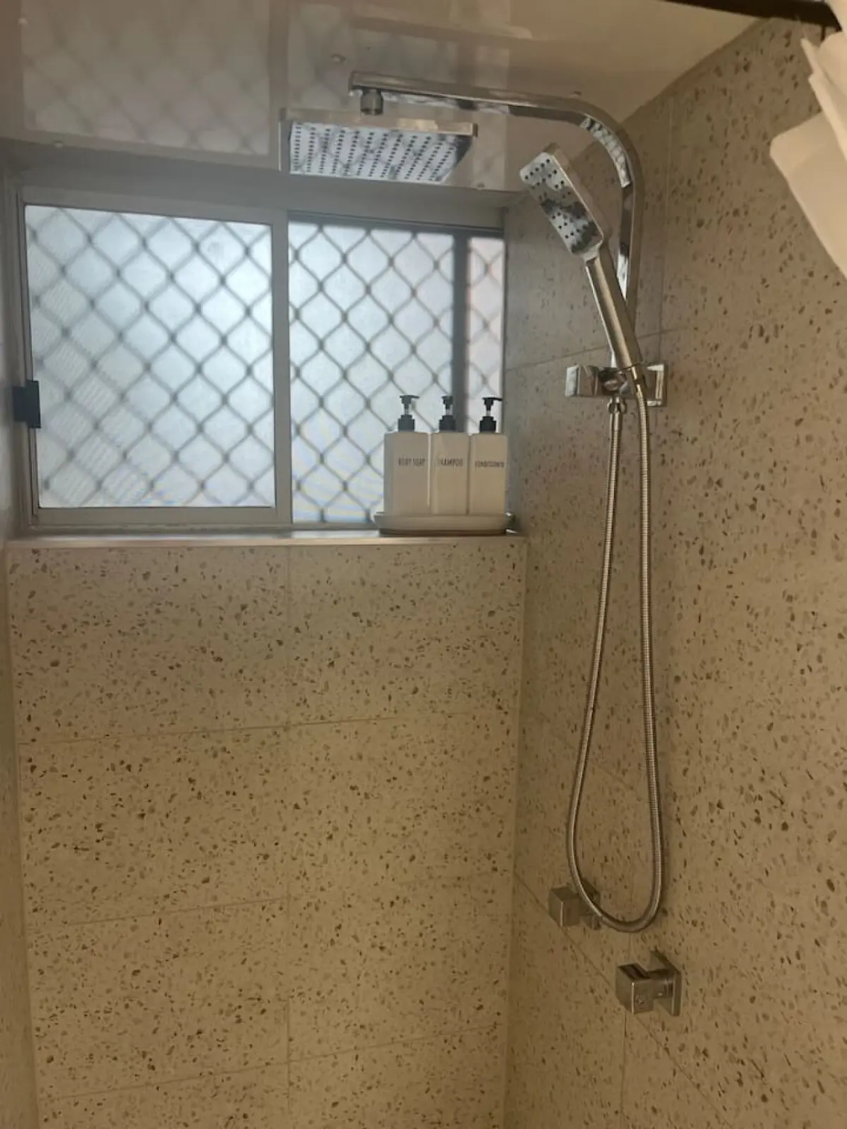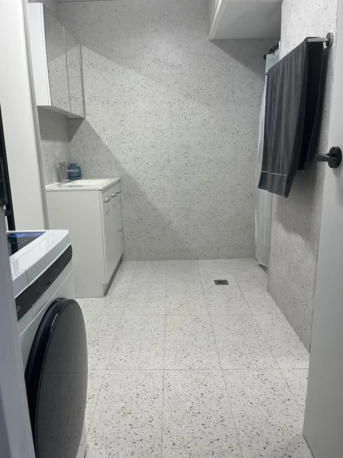 Modern Bathroom: The bathroom is bright and clean, equipped with a shower, fresh towels, and essential toiletries.