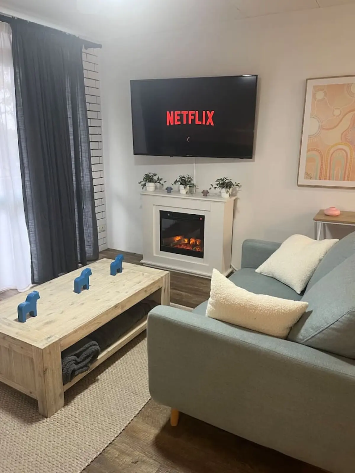 Comfortable Living Space: Relax in the inviting living room, complete with comfortable seating and a smart TV, perfect for unwinding after a day of exploring.