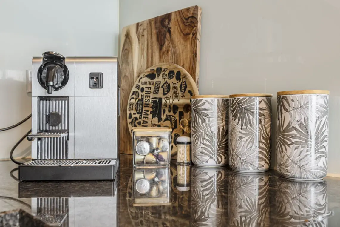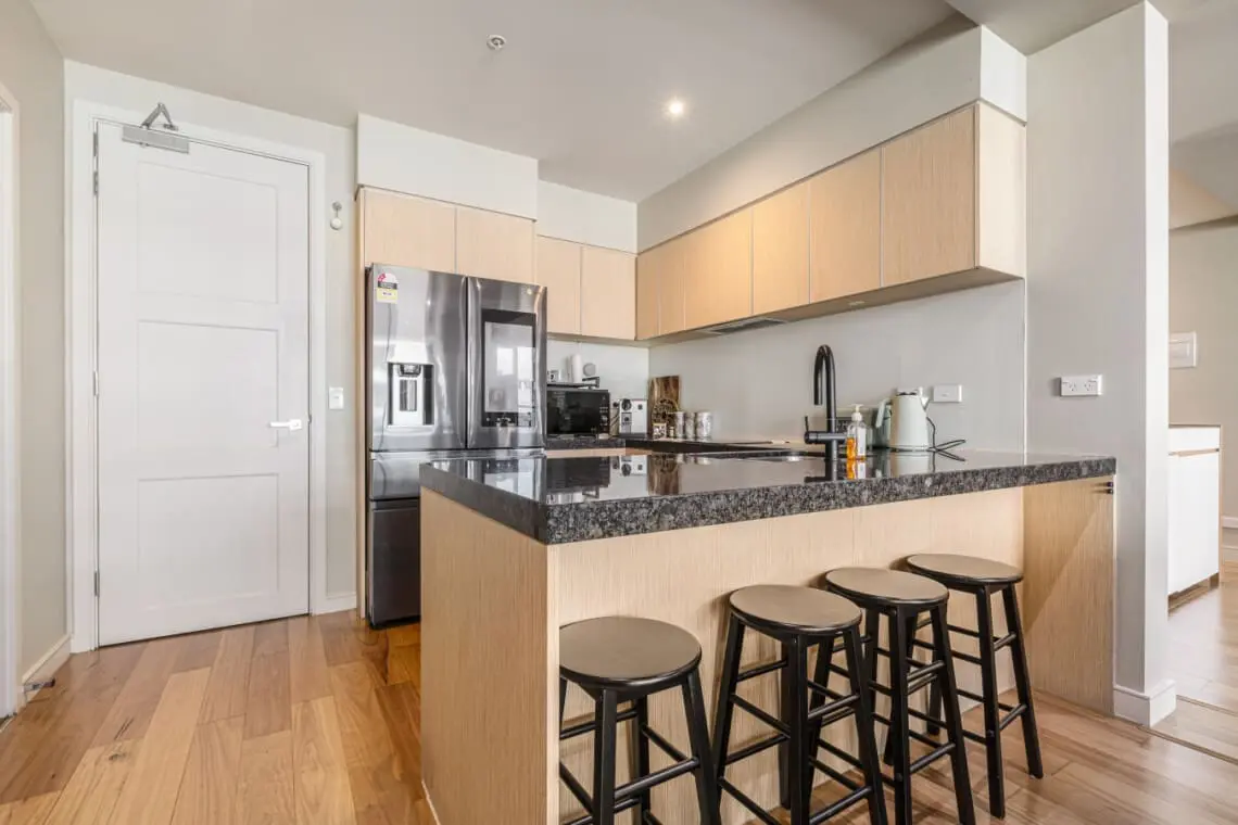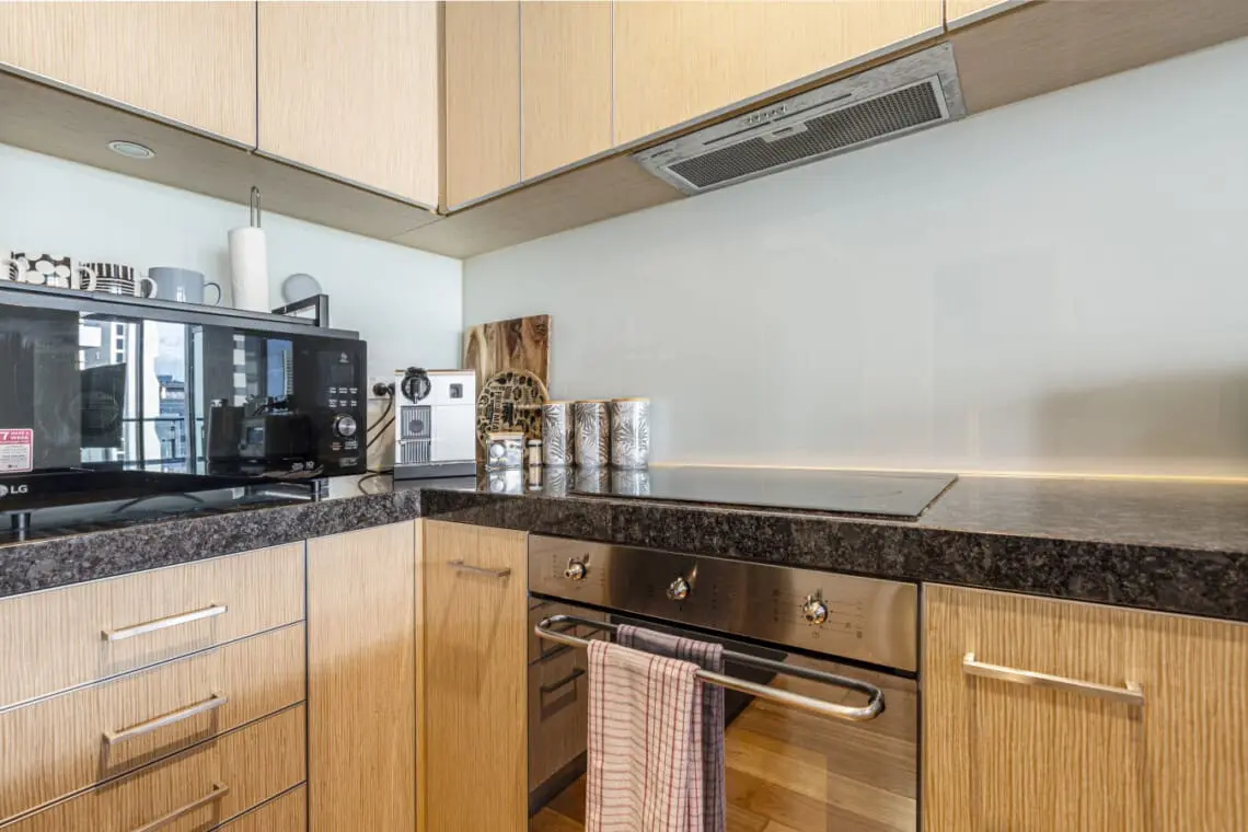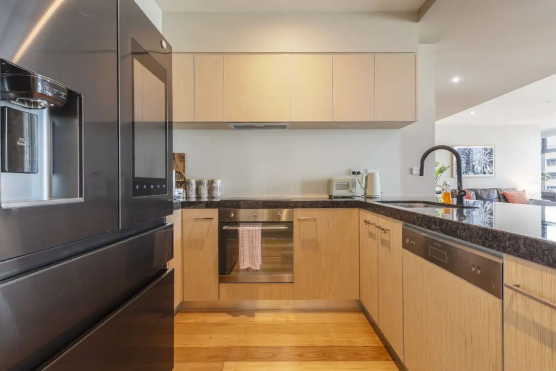 Fully equipped kitchen with high-quality appliances, including a dishwasher & stone benchtop